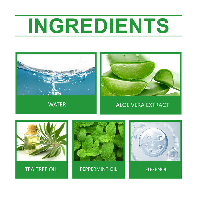 Ingredientes: Água, Extrato de Aloe Vera, Óleo da Árvore do Chá, Óleo de Hortelã-pimenta, Eugenol